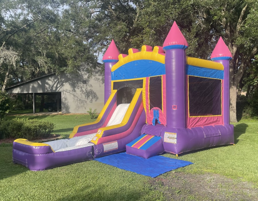 Dream Purple is a perfect combination of bouncing, sliding and splashing for all ages. Get your workout going in the bounce house and cool off down the slide into the pool. Fits in most yards and a nice addition to any summer party.