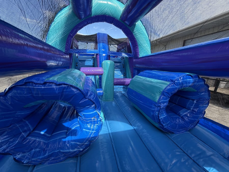 Bring high-energy racing, climbing and sliding to your next event. The 46ft Purple Plunge Obstacle Course features dual lanes, pop-up obstacles, a climbing wall and a big slide. Fast setup. Built for safety. Designed for nonstop action. Ideal for schools, backyard parties, festivals, churches and daycares. 🎉