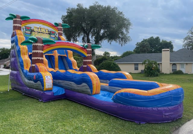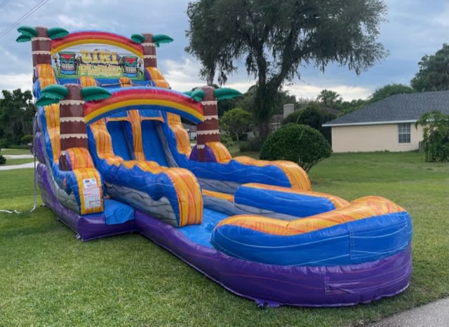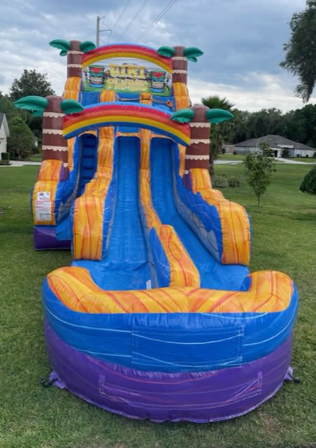The 18 foot Dual Lane Tiki Plunge Water Slide has left stair entry and extended lanes. It's great for racing and keeps everyone cool during the summer. Suitable for a wide range of ages.