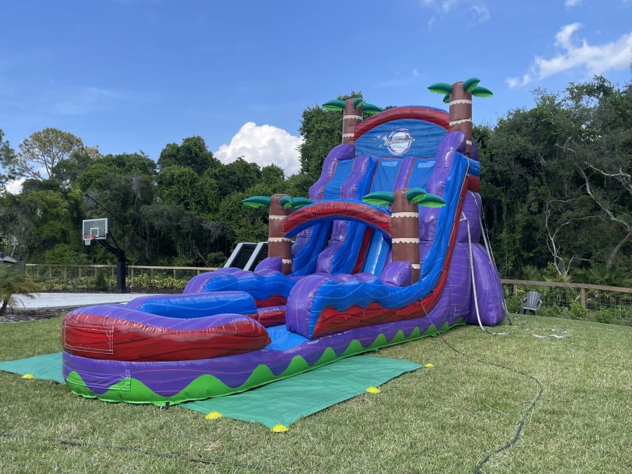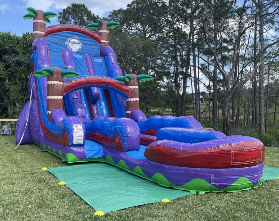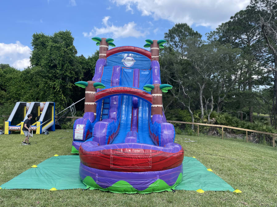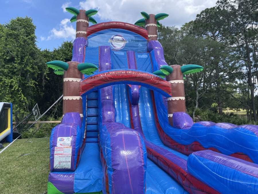 Bring the ultimate splash-tastic experience to your next event with our 22ft Tropical Hurricane Double Lane Water Slide! 🌊🌴 Perfect for backyard parties, church gatherings, and more, this exciting inflatable features two lanes for double the fun and an inflated pool for a refreshing landing. Standing tall at 22ft, this water slide is sure to be the highlight of any celebration in Sanford, Lake Mary, Altamonte Springs, Casselberry, and even Winter Springs!
